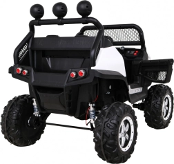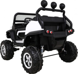 Interiér poteší sedadlom z eko kože s bezpečnostnými pásmi a podsvieteným štartom. Svetlá LED vpredu aj vzadu dodajú autu realistický vzhľad, zatiaľ čo audio panel s MP3/AUX/USB a zvuky vo volante zabavia deti na dlhé vychádzky. Praktický zadný bagážnik uschová drobnosti na cestu.