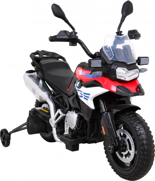 Štýlová detská motorka licencovaná BMW F850 GS prináša realistický zážitok z jazdy vďaka dvom motorom 2×35 W a batérii 12 V/7 Ah. Ponúka pomalý štart pre plynulý rozjazd, EVA penové kolesá pre tichú a komfortnú jazdu, predné LED svetlá a audio panel s USB/AUX. Stabilitu zabezpečujú odnímateľné pomocné kolieska.