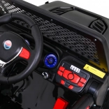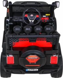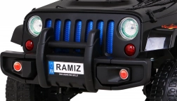 V bezpečnosti dieťaťa pomáha dvojbodový bezpečnostný pás na sedadle potiahnutom ekokožou, zatiaľ čo diaľkový ovládač 2,4 GHz umožňuje rodičom kontrolovať rýchlosť a bezpečnosť jazdy vďaka trojstupňovej rýchlosti a bezpečnostnému tlačidlu Stop.