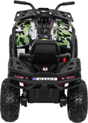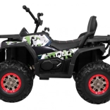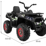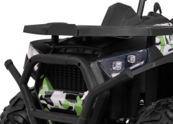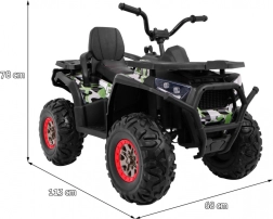 Quad má veľké EVA kolesá, ktoré zaisťujú výbornú priľnavosť a stabilitu počas jazdy. LED svetlá pridávajú na atraktivite a funkčnosti nielen v prednej, ale aj zadnej časti vozidla. Ďalšie prvky zahŕňajú kvalitné čalúnenie sedadla z čiernej ekokože a pokročilý audio panel s možnosťou pripojenia MP3, SD, AUX a USB.