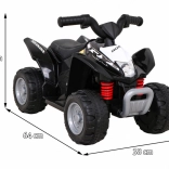 Doprajte deťom prvé vodičské zážitky s kompaktnou elektrickou štvorkolkou 6 V. Motor 1×30 W ponúkne plynulý rozjazd vpred, nízka hmotnosť uľahčí ovládanie a bezpečné manévrovanie. Predné LED svetlá a zvuk klaksónu pridávajú na zábave aj viditeľnosti.