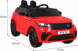 Štýlové detské elektrické autíčko RANGE ROVER VELAR v červenej farbe ponúkne realistický vzhľad, pohodlnú jazdu na kolesách z EVA peny a diaľkové ovládanie 2,4 GHz pre plnú kontrolu rodičov. Dva motory 35 W, plynulý rozjazd, LED svetlá a audio panel s MP3/USB/AUX zaručia zábavu aj bezpečie.
