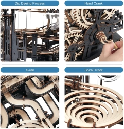 ROKR Mramorové Nočné Mesto je ohromujúci 3D skladací model guľôčkovej dráhy, ktorý kombinuje zábavu a vzdelávanie. Tento model sa skladá z 294 precízne vyrezaných dielov, ktoré tvoria zložitú dráhu s rôznymi prekážkami a mechanikou poháňanou ručne otáčaním kľúčkou. Súčasťou balenia je kompletný manuál, ktorý vás prevedie procesom skladania.