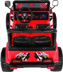 RAPTOR DRIFTER je robustné detské elektrické vozidlo inšpirované off‑road dizajnom. Vďaka dvom motorom 2×45 W a batériám 2×6 V/10 Ah zvláda nerovný terén, pričom mäkké EVA kolesá tlmia vibrácie a zabezpečujú tichú, pohodlnú jazdu. Soft štart chráni deti pred trhnutím pri rozjazde a bezpečnostné pásy držia malého vodiča v sedadle.