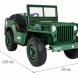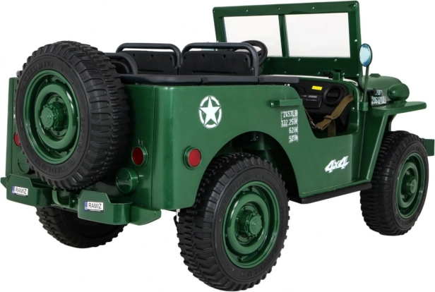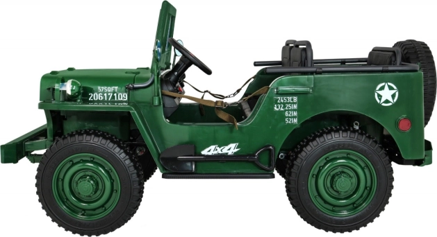 Veľkorysé rozmery 158 × 80 × 82 cm, nosnosť 60 kg a silný akumulátor 12 V / 14 Ah zaručia dlhú zábavu pre súrodencov aj kamarátov. Ideálna voľba pre malých dobrodruhov, ktorí milujú realistickú jazdu a vojenský štýl.
