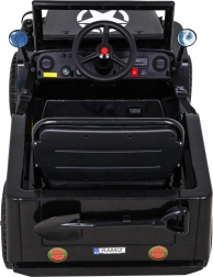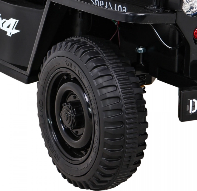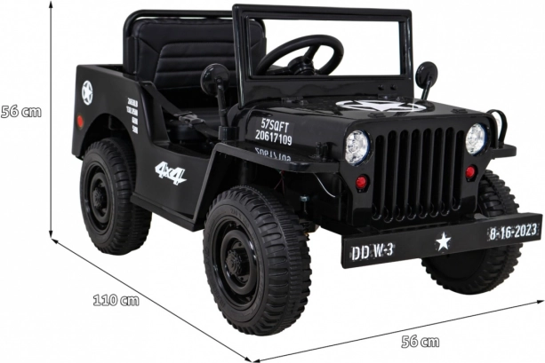 Toto čierne detské elektrické autíčko v štýle vojenského jeepu poteší malých dobrodruhov autentickým vzhľadom, funkčnými svetlometmi a pohodlným sedadlom z ventilovanej eko kože. Vďaka pohonu 4x4, mäkkým EVA kolesám 26 × 9 cm a tlmičom vpredu aj vzadu zvládne nerovnosti aj domáci terén. Plynulý rozjazd a voľba smerov vpred/vzad zvyšujú komfort a bezpečnosť pri jazde.