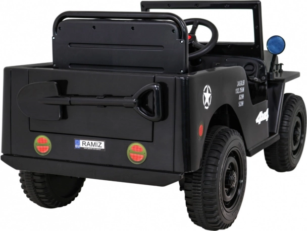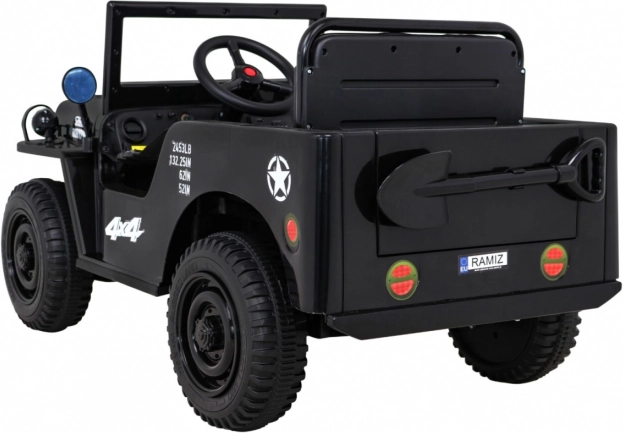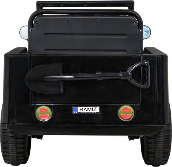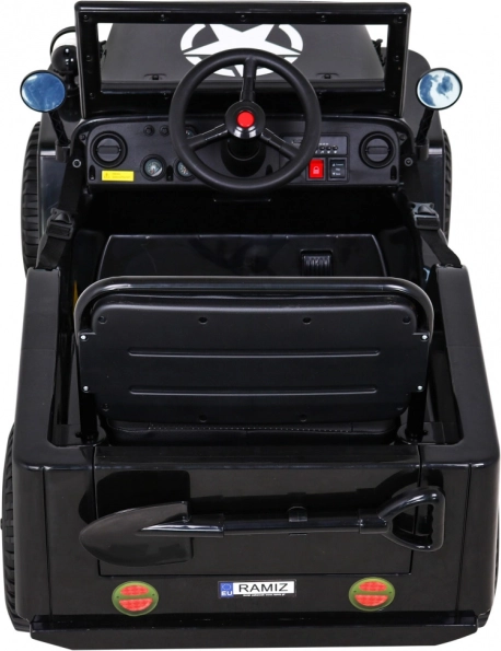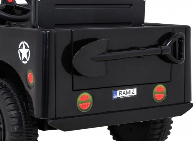 Rodičia ocenia ovládač 2,4 GHz s tromi rýchlosťami a bezpečnostným tlačidlom Stop. Deti si užijú audio panel s MP3/USB/Bluetooth, klaksón v volante a efektné LED predné svetlá s vlastným spínačom. Praktické predné aj zadné úložné priestory pojmú drobnosti na cesty a pribalená dekoratívna lopatka dotvorí vojenský charakter.