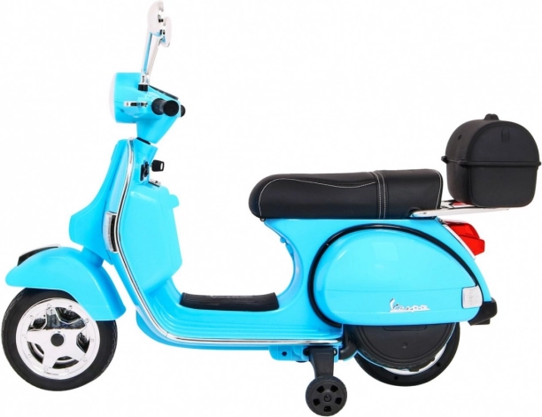 Detská elektrická kolobežka VESPA, modrá s pomocnými kolieskami a audio