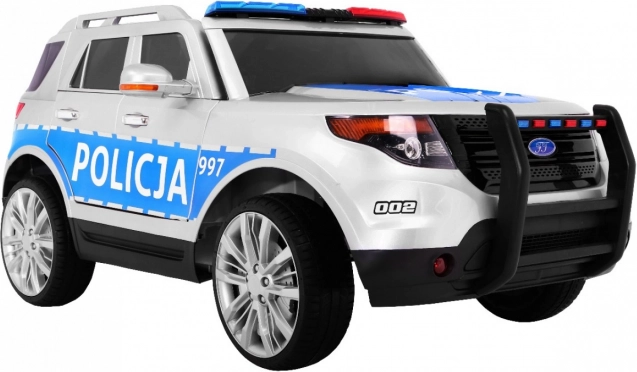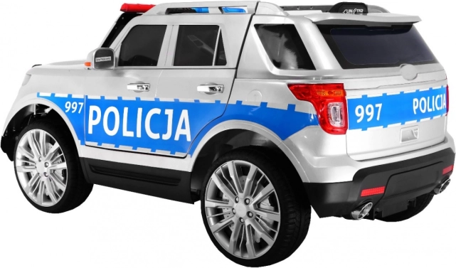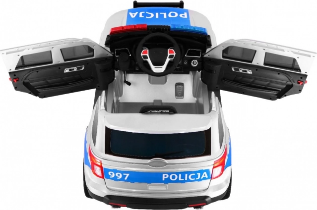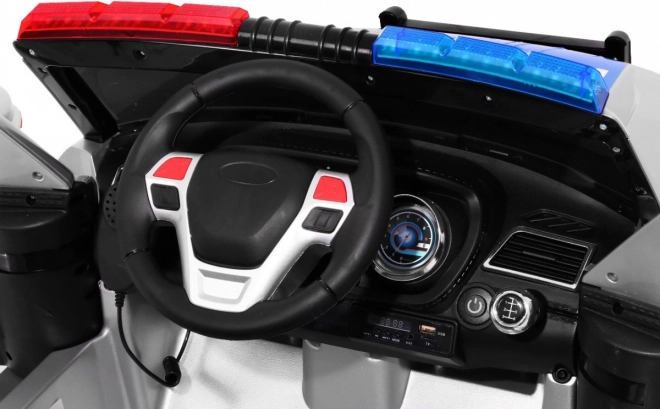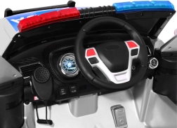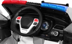 Auto je vybavené realistickými LED svetlami vpredu aj vzadu, blikajúcimi policajnými majákmi a bohatým audio panelom: FM rádio, MP3, SD, AUX, USB aj zvukmi vo volante. Veľkým lákadlom je megafón prepojený s reproduktormi a autentické sirény. O pohodlie sa starajú EVA bezúdržbové kolesá, 4 tlmiče (2 vpredu, 2 vzadu) a vetrané sedadlo z eko kože. Otváracie dvere a transportná rukoväť s prídavnými kolieskami uľahčia manipuláciu.