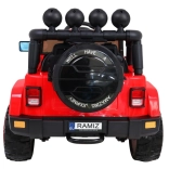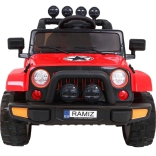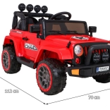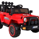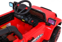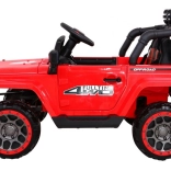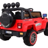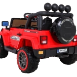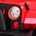 Robustné detské terénne auto s pohonom 4x4, mäkkými kolesami EVA a diaľkovým ovládaním 2,4 GHz pre bezpečnú jazdu. Ponúka plynulý rozjazd, predné aj zadné LED svetlá, otváracie dvere s poistkou a bohatý audio panel (USB, SD, AUX, MP3). Praktická skrýša v rezervnom kolese poteší malých dobrodruhov.