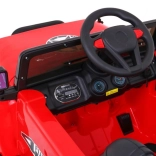 Rodičia ocenia moderný diaľkový ovládač 2,4 GHz s tromi rýchlosťami a núdzovým tlačidlom STOP. Malí vodiči si užijú jasné LED svetlá, funkčný klaksón a hudobný panel s USB, SD aj AUX vstupom. Otváracie dvere s poistkou uľahčujú nastupovanie, zatiaľ čo skrýša v rezerve ponúka miesto na drobnosti.