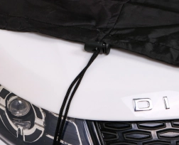 Poťah RAMIZ je vybavený praktickým sťahovacím mechanizmom, ktorý umožňuje ľahké a bezpečné upevnenie na vozidle. Vďaka tomu sa poťah prispôsobí tvaru auta a zabezpečuje tak perfektné priľnutie.