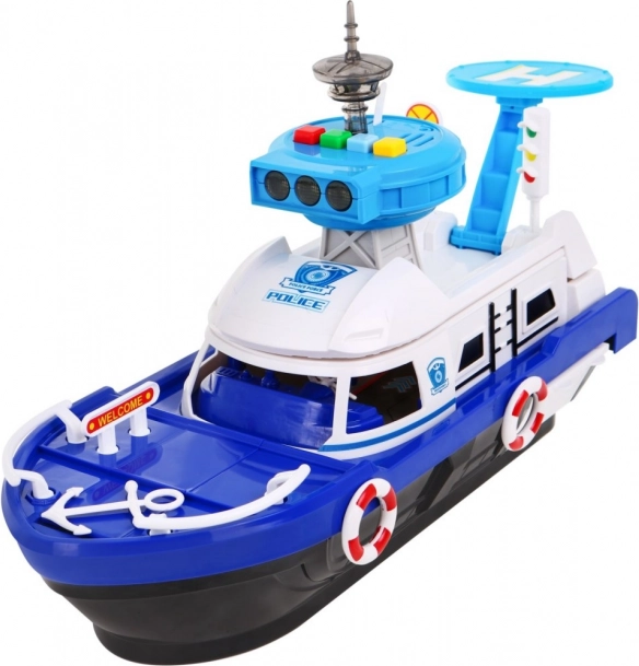 Pripojte sa k zábavným dobrodružstvám s interaktívnou policajnou loďou určenou pre deti od 3 rokov. Táto loď je vybavená funkciami zvuku a svetla, ktoré dodávajú realistické herné prvky. Vďaka kontrolnej veži s heliportom a panelu so zvukovými a svetelnými alarmami prinesie neopakovateľný zážitok.