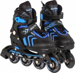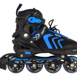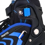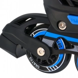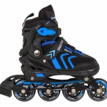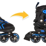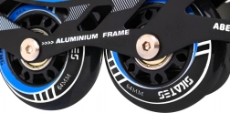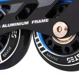 Bezpečné upevnenie zabezpečuje trojité zapínanie: šnurovanie, pásik na suchý zips a pracka so zaistením proti nechcenému otvoreniu. Hliníkový rám pri inline/trekových korčuliach zvyšuje tuhosť aj životnosť, PU kolieska 64×24 mm s tvrdosťou 85A v spojení s ložiskami ABEC–7 sa postarajú o hladkú jazdu. Pri zimných radovánkach oceníte nerezové nože ľadových korčúľ a praktické chrániče nožov.