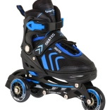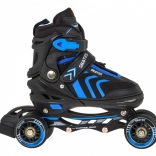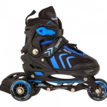 Univerzálna sada pre malých korčuliarov kombinuje 4v1: inline korčule, trekové korčule a ľadové korčule s možnosťou rýchlej výmeny nadstavcov. Vďaka päťstupňovej regulácii veľkosti 29–33, komfortnej výstelke z peny EVA s materiálom Velvet a pevnej polotvrdej konštrukcii ponúka pohodlie, stabilitu a bezpečie. Hliníkový rám, ložiská ABEC-7 a PU kolieska 64 mm 85A zabezpečujú plynulú a istú jazdu, o brzdenie sa stará brzda na pravej korčuli.