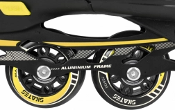 Hladkú jazdu zaručujú PU kolieska 72x24 mm s tvrdosťou 85A, presné ložiská ABEC-7 a pevný hliníkový rám. Na zimné použitie stačí vymeniť podvozky za nerezové nože. Vnútro topánky je komfortné vďaka EVA pene, tvarovanej vložke, polopriepustnej membráne a ventilácii.