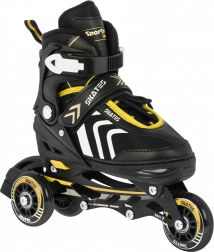 Univerzálna detská sada 4v1 na celoročnú zábavu: inline korčule, kolieskové quad aj ľadové korčule v jednom. Vďaka päťstupňovému systému nastavenia veľkosti 39–43 rastie s dieťaťom. Hliníkový rám, ložiská ABEC-7, PU kolieska 72 mm / 85A a nerezové nože zabezpečujú plynulú jazdu a bezpečie. O pohodlie sa stará polotvrdá konštrukcia, vetranie a mäkká vložka z EVA s materiálom Velvet.
