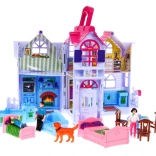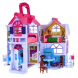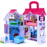 Rozkladacia dvojposchodová vila pre deti s otvárateľnými dverami a oknami je ideálna na stimuláciu detskej fantázie. Domček sa dá ľahko prenášať pomocou rukoväte a je vybavený rôznymi miestnosťami, ako je kuchyňa, obývacia izba a spálňa.