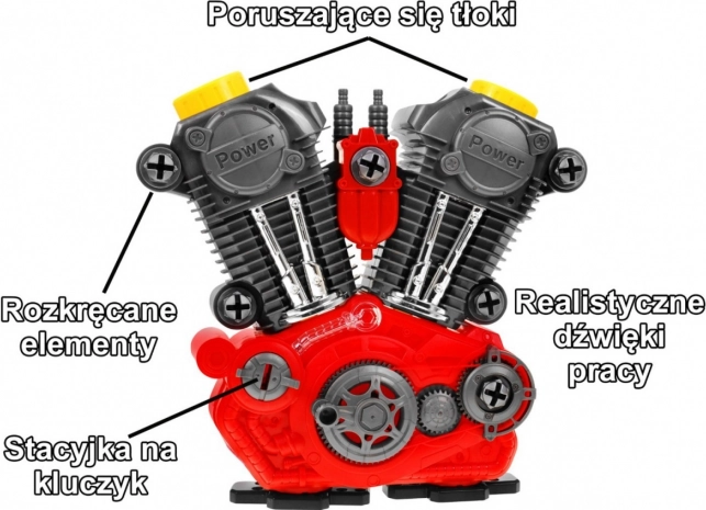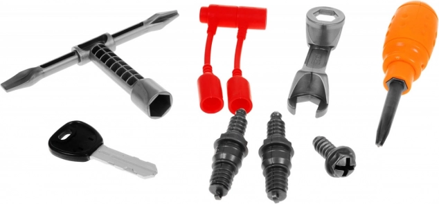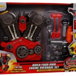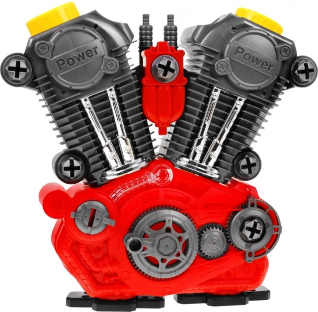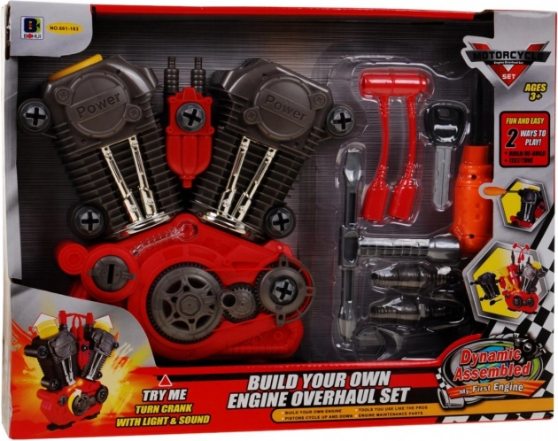 Súčasťou sady sú rôzne plastové nástroje, ktoré deťom umožňujú vyskúšať si skutočné opravy a úpravy motoru.