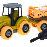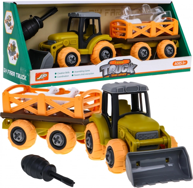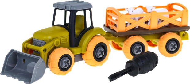 Tento solídne spracovaný traktor s odnímateľným prívesom je ideálny pre deti od troch rokov. Je dodávaný v už zloženom stave a jeho hlavnou výhodou je, že ho možno pomocou priloženého skrutkovača rozložiť a znovu zložiť. Nepotrebuje žiadne batérie, takže je bezpečný a ľahko použiteľný. Detaily hračky zahŕňajú: