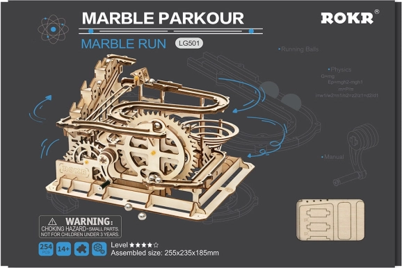Drevená guľôčková dráha Rokr predstavuje fascinujúce spojenie vedy a mechaniky. Zostavte model a sledujte pohyb guľôčok vďaka prepracovaným strojovým prvkom.
