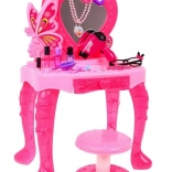 Praktický šuplík ukryje všetky drobnosti, zatiaľ čo priložená stolička zaistí pohodlné sedenie. Bohatá sada šperkov a kozmetických rekvizít umožní deťom objavovať štýl, rozvíjať jemnú motoriku aj sociálne zručnosti pri spoločnej hre.