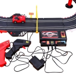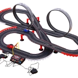 | - 2 závodné autá, - 2 diaľkové ovládania, - dráha po častiach, - závory, - dopravné značky, - napájanie,  | |