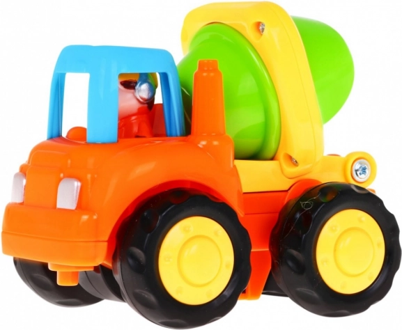Sada obsahuje 4 stavebné vozidlá s pohonom:- domiešavač betónu