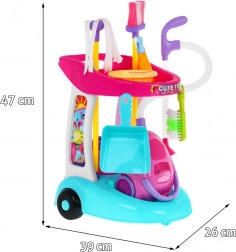Vozík je navrhnutý tak, aby všetky upratovacie nástroje boli ľahko dostupné a prenosné. Jeho pestré farby spríjemňujú hranie a podporujú rozvíjanie detskej predstavivosti.