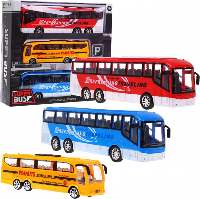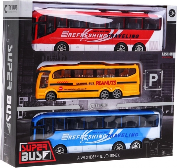 Súprava troch autobusov, ktorá nadchne každého malého milovníka motorového sveta, obsahuje :