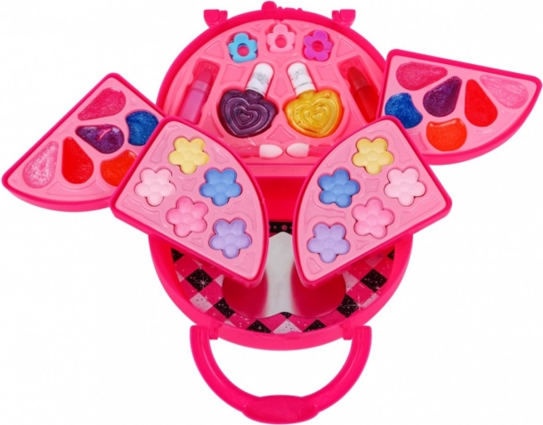Táto rozkošná a praktická rozkladacia kozmetická kabelka pre deti ukrýva bohatú paletu líčidiel, vďaka ktorým si malí vizážisti vyskúšajú prvé krôčiky v líčení. Prenosné prevedenie s úchopom a zrkadielkom zaručí, že make-up sada bude vždy po ruke doma aj na cestách.