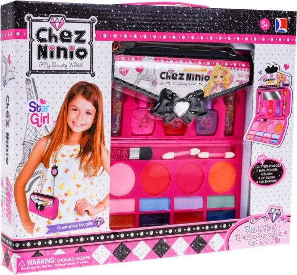 Roztomilá detská sada na líčenie v podobe ružovej kabelky poteší malé parádnice od 5 rokov. Ponúka 2v1 – kabelku a mini toaletku s lakmi na nechty, očnými tieňmi, lícenkami a leskami, zrkadielko i retiazku cez plece. Vyrobené z bezpečných materiálov a ideálne na cestovanie a kreatívnu hru.
