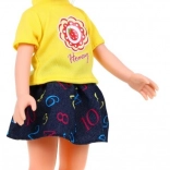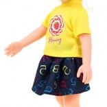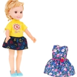 Bábika má základný komplet a navyše kvetované šaty – deti môžu kombinovať kúsky podľa nálady a príbehu.