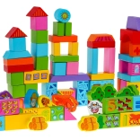 Táto bohatá sada drevených kociek prináša deťom hodiny zmysluplnej zábavy. Kocky sú vyrobené z kvalitného dreva, lakované bezpečnými farbami a majú hladké, nezaoblené hrany bez otrepov pre pohodlné a bezpečné hranie. Rôzne tvary a farby nabádajú k budovaniu domčekov, veží, mostov aj jednoduchých vozíkov.