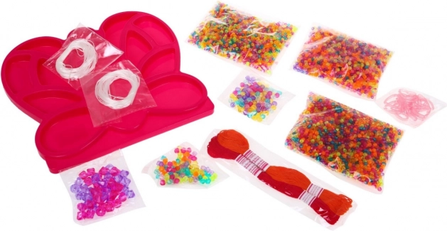 Táto bohatá sada korálikov je ideálna pre malých tvorcov šperkov. Vďaka širokej palete farieb a tvarov si deti môžu navrhovať náramky, náhrdelníky aj ozdoby podľa vlastnej fantázie. Motýliková podložka uľahčuje triedenie jednotlivých dielikov a udržiava pracovné miesto prehľadné.