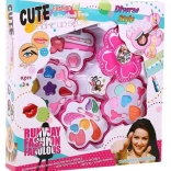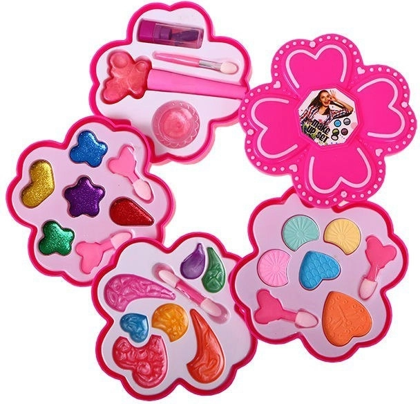 Táto pôvabná kvetinová kazetka s make-upom poteší každé dieťa, ktoré miluje hru na salón krásy. Rozkladacia konštrukcia so štyrmi úrovňami a viečkom ukrýva pestrú paletu farieb a textúr na fantazijné líčenie bábik aj bezpečnú zábavu detí.
