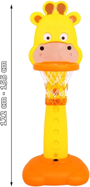 Rozkošný set v tvare žirafy motivuje deti k pohybu, rozvíja koordináciu očí a rúk a podporuje zdravé návyky. Výšku koša ľahko prispôsobíte veku a zručnostiam dieťaťa (125–155 cm), takže set porastie spolu s ním. Robustná plastová konštrukcia a veľká základňa zabezpečujú stabilitu pri hre.