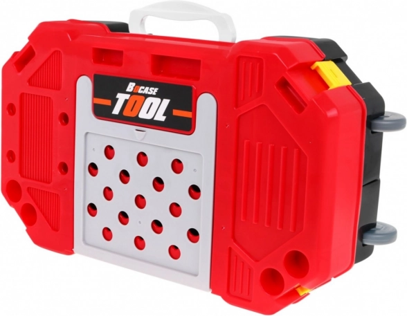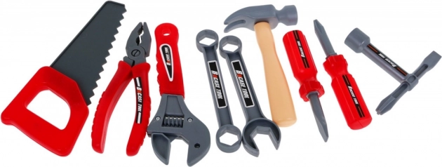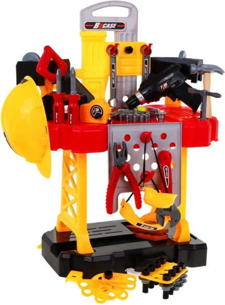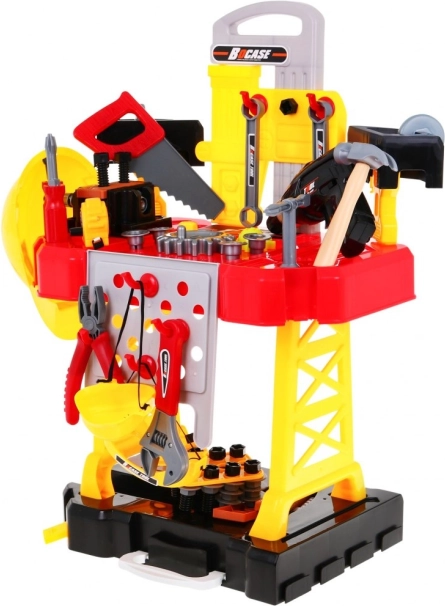 Súčasťou je bohatá výbava: akumulátorová vŕtačka/skrutkovač, kladivo, zverák, píla, kliešte, imbusové aj vidlicové kľúče, skrutkovače, skrutky, matice, ozubené kolieska, meter aj pracovné prvky so závitmi na nekonečné skrutkovanie a montovanie. Vďaka šikovne navrhnutej organizácii nástrojov si deti precvičia poriadok, trpezlivosť a koordináciu oko–ruka.