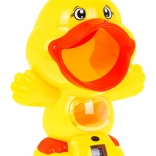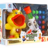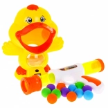 Roztomilý terč v tvare kačky s otvoreným zobákom zbiera guľôčky, po zásahu reaguje zvukom a uľahčuje priebežné počítanie skóre.