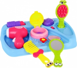 Zrkadlá, fén, kefa, hrebeň, „parfém“ a „rúž“ podporujú predstavivosť a rozvoj sociálnych zručností pri hraní rolí.