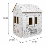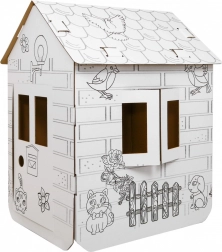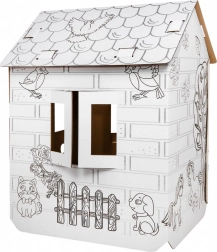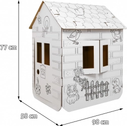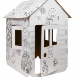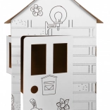 Veľký kartónový domček na vyfarbovanie ponúka deťom od 3 rokov hodiny tvorivej zábavy. Má otváracie okná a dvere, motívy so zvieratami na vyfarbovanie a jednoducho sa skladá bez nástrojov. Podporuje kreativitu, jemnú motoriku a fantáziu pri hre v interiéri.