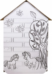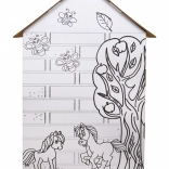 Biele steny s čiernymi obrysmi koní lákajú na maľovanie pastelkami či fixkami. Deti si vytvoria jedinečný vzhľad domčeka a rozvíjajú fantáziu.