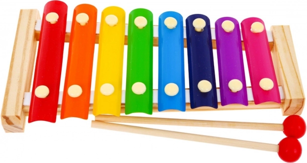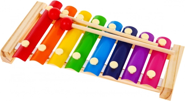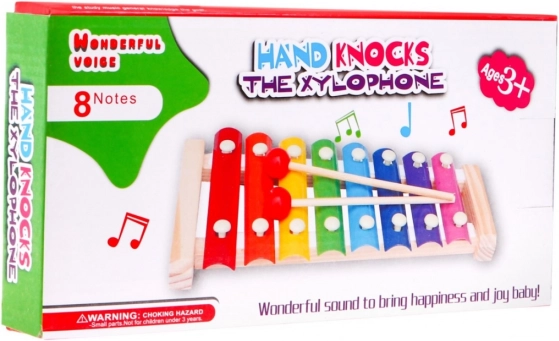 | Rozmery | - činely cca 24 cm x 12 cm x 3 cm, - najkratšia doštička cca 9 cm x 2,2 cm - najdlhšia doštička cca 12,5 cm x 2,2 cm, - palička cca 17 cm x 2 cm, - rozmery balenia cca 25,5 cm x 13,5 cm x 4 cm. |