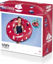 Praktický bezpečnostný ventil uľahčuje nafukovanie a zabraňuje úniku vzduchu. Červená farba s motívmi plachetníc a majákov dodáva originálny štýl, ktorý vynikne v každom bazéne.