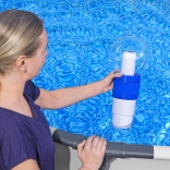 Stačí vložiť tablety a nechať dávkovač voľne plávať. Pre bezpečnosť ho počas kúpania vyberte z bazéna.