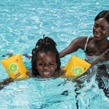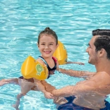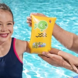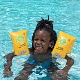 Jasne žlté rukávniky so zelenou rybičkou sú dobre viditeľné a deti motivujú k hre aj učeniu sa vo vode.