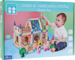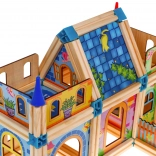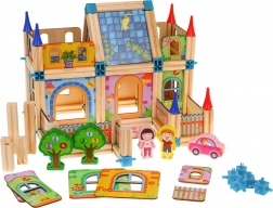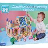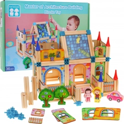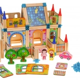 Všetky prvky sú z príjemného dreva s hladkým povrchom, ideálne pre malé detské ruky. Sada podporuje rozvoj priestorovej predstavivosti, logického myslenia aj kreatívneho rozprávania. Kombinácia konštrukčných a herných dielikov podnecuje deti k slobodnej hre aj spoločnému stavaniu s rodičmi.