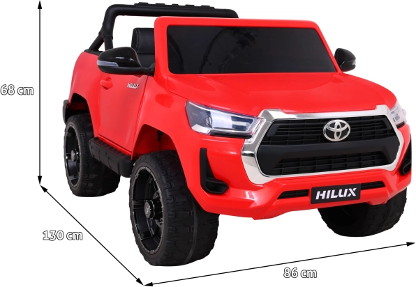 Licencovaný vzhľad legendárneho pick-upu TOYOTA Hilux v detskom prevedení nadchne realistickými detailmi, otváracími dverami a voliteľným pohonom 4x4 / 2x2. Silná batéria 12V/14Ah a štyri motory 45 W zaistia plynulý rozjazd a dostatok sily na jazdu po záhrade aj pevnom povrchu.