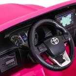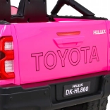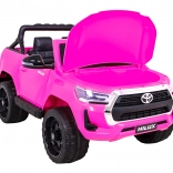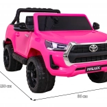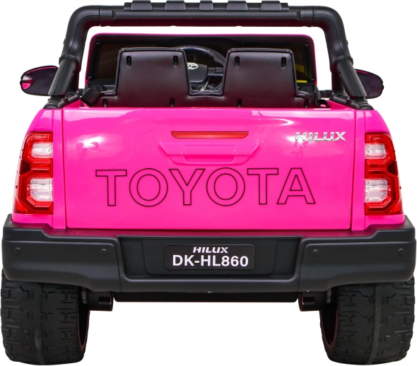 Robustné detské autíčko TOYOTA Hilux 4x4 v ružovej farbe ponúka realistickú jazdu s výkonom 4 × 45 W, silnou batériou 12 V / 14 Ah a voliteľným pohonom 4x4/4x2. Rodičia ocenia diaľkové ovládanie 2.4G s tlačidlom STOP, deti zas LED svetlá, audio panel s Bluetooth/USB/MP3/FM, mäkké EVA kolesá a pohodlné sedadlo z eko kože s pásmi.