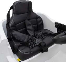 Rodičovská kontrola vďaka ovládaču 2,4 GHz s tromi rýchlosťami a núdzovým tlačidlom Stop. Dieťa je chránené 5-bodovými pásmi s mäkkými chráničmi na pohodlnom sedadle z ekokože.